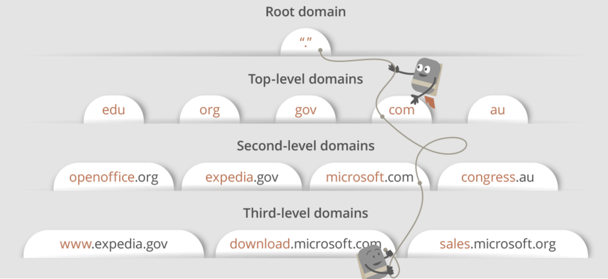Many website URLs we encounter today contain a third-level domain, a second-level domain, and a top-level domain. Each of these levels contains their own name server, which is queried during the DNS lookup process.